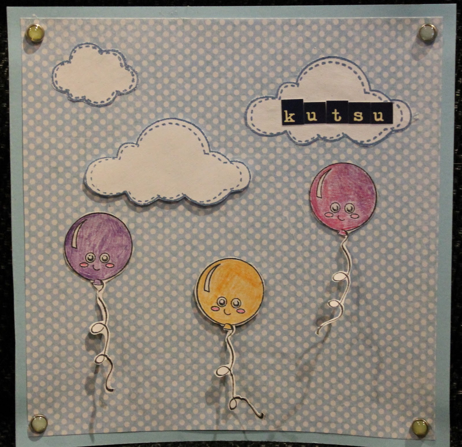 Lopputulokseen olen todella tyytyväinen ja teemakin on sama kuin muissakin poikani synttärikutsuissa. Sama ilmapallo leijailee kaikissa. Neljä kutsua olis vielä tekemättä. Täytyy koittaa saada ideoita jostain, et sais poika jakaa viimeistään perjantaina kutsunsa.